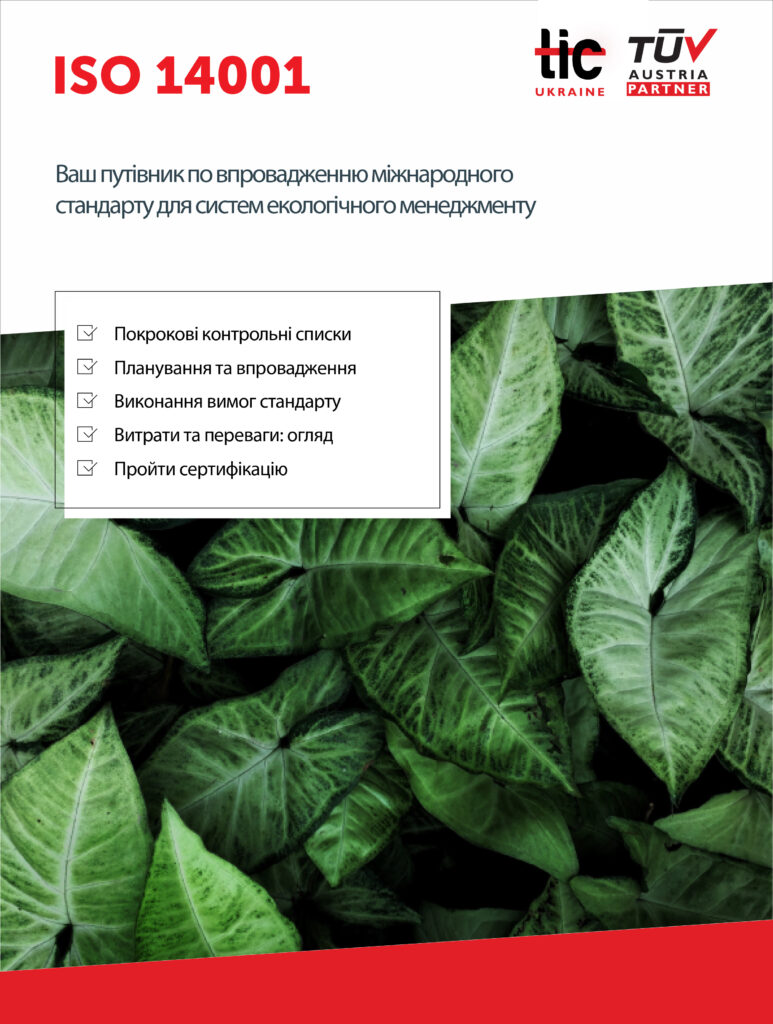 Але що потрібно знати, щоб прийняти обґрунтоване рішення про впровадження системи екологічного менеджменту та сертифікації за стандартом ISO 14001? Якими є ключові вимоги стандарту і як ви можете їх виконати? Які переваги пропонує стандарт – і скільки це буде коштувати? Цей документ надасть вам необхідну інформацію, а також практичний план імплементації, доповнений з контрольними списками, що охоплюють усі важливі деталі стандарту для систем екологічного менеджменту